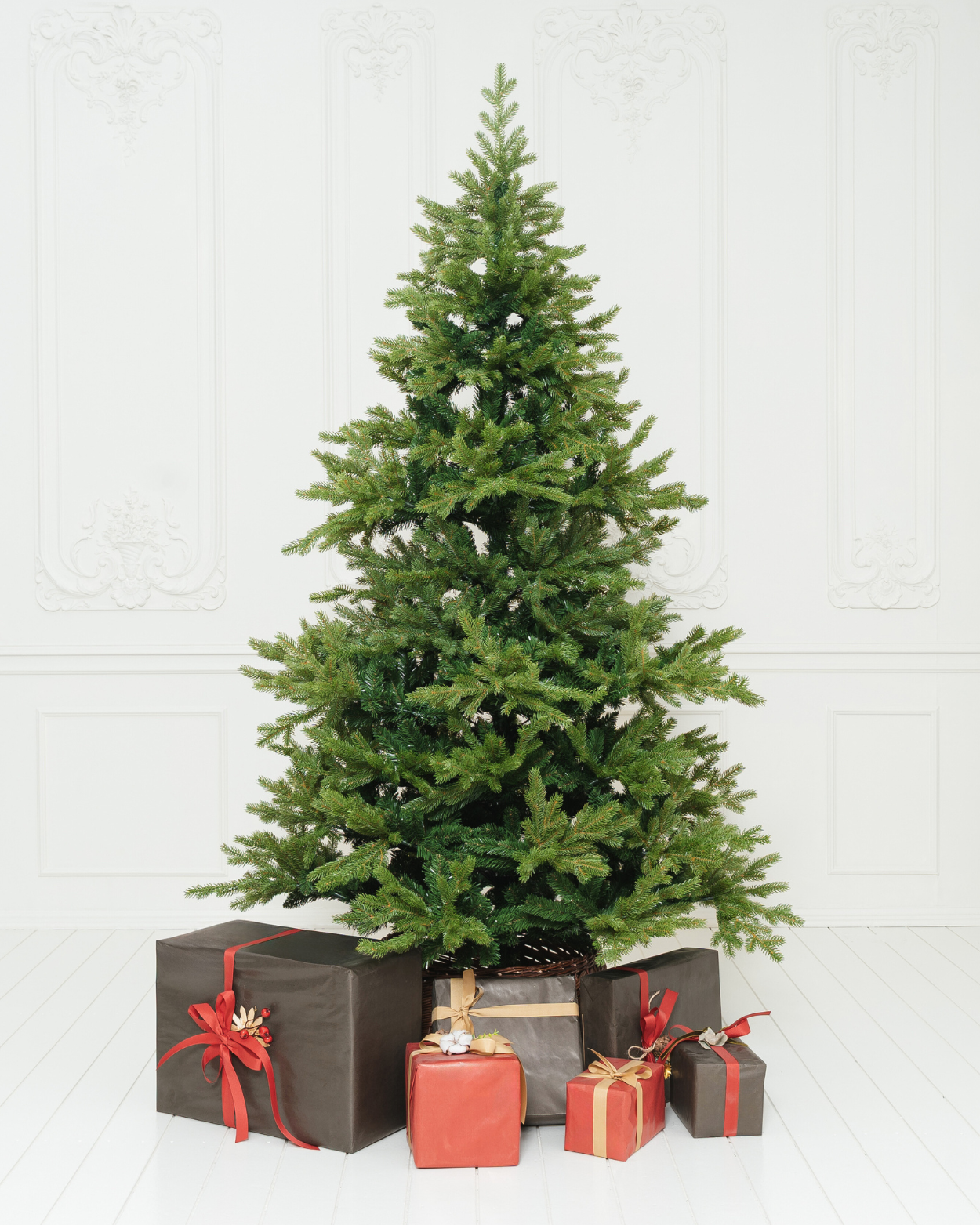Iegādātajā mākslīgajā eglītē nav iekļautas rotas, dāvanu kastes vai pīts grozs.